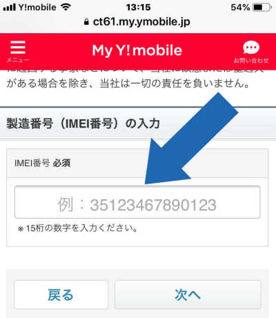 IMEIコードのメモと、バックアップ - (前半作業)「My Y!mobile」のホームページからの設定