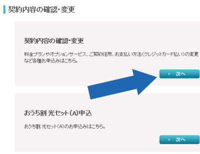 パソコン 「契約内容の確認・変更」の「次へ」をクリック