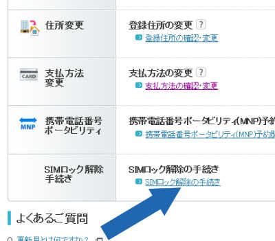 - スマホ 画面を下にスクロールして、「SIMロック解除の手続き」をタップ