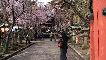 桜の開花情報を見ると近場のほとんどがツボミで、御坊まで行くと7分咲きという状況の中、桜が7分咲きから満開に近いという情報を見つけ、奈良公園の隣の氷室神社へ出かけてみた。