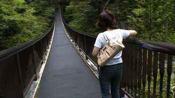 すぐ横にある吊り橋を女房が怖ごわ渡り始めたと思ったら2~3メートルで引き返してきた。