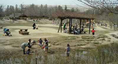 駐車場から中に入ると大きな芝生の公園になっており、家族連れが弁当を持って遊びに来ていた。