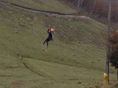 | 9つのコースを順に、ワイヤーをすべる ジップラインをしていました。 |