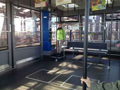 | さすが定員121人の箱は大きい。 | 登りより下りの方が 急勾配を感じた。 |