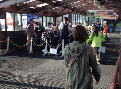 | 上の駅に着くと小学生の団体さんが 並んで乗車待ち。 |