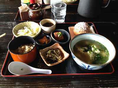 昼食は「百年古屋 大家」にて JAL/JTA オリジナル美ら御前(ちゅら御膳+大家ぼーる)