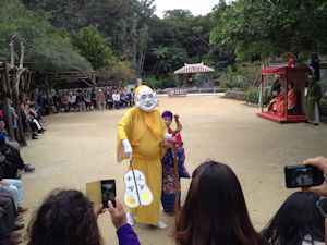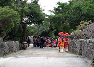 4時から始まる絵巻行列「道ジュネー」を見てきた。これは民謡・琉球芸能・エイサーショーが揃った複合パレードらしく、年中行事にみられる芸能を広場で見せてくれる。