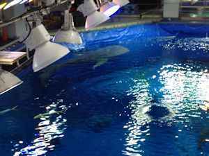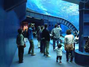 | 見学コースの最後に巨大水槽を上から見ることが出来る。 |