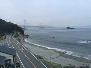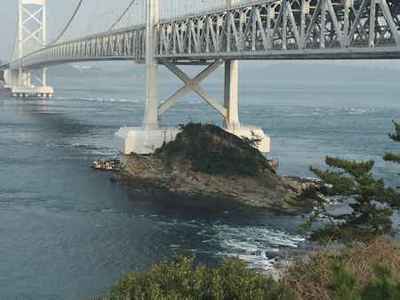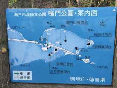 この日は午後6時頃が大潮の満潮でしたが、4時過ぎると風が強く霞がかかって渦潮をハッキリ見ることが出来ませんので大橋の渦の道から見学するのは諦めました。しかし鳴門自然公園の展望台からの景色には満足できました。