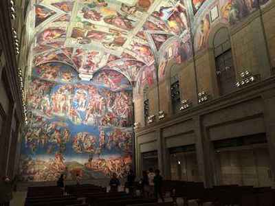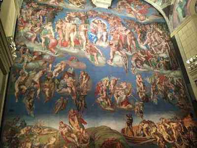最初に驚かされたのは実物大の「システィーナ礼拝堂と天井画・壁画(ミケランジェロ)」でした。さらに次々に案内される絵画は全て実物大を忠実に再現されたものらしく、知識の無い私達でも充分楽しめました。