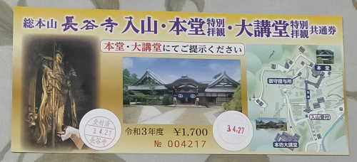 長谷寺境内駐車場から歩いてすぐの、仁王門のすぐ横に参拝入山受付所があります。