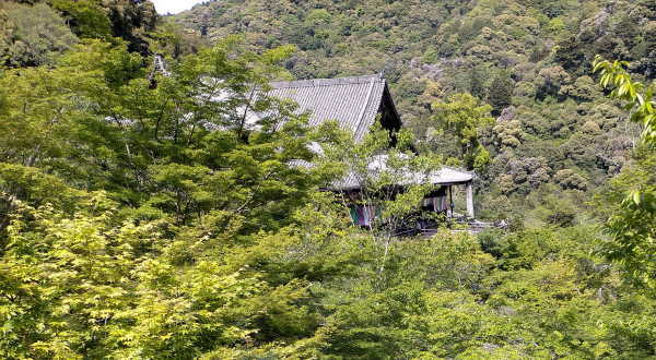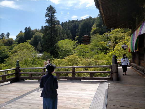 五重塔から本堂を見ると右端に少し舞台が見えました。