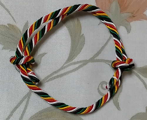 本尊大観音尊像特別拝観の受付で、長谷観音さまとご縁を結ぶためのミサンガのような「五色線ごしきせん」を左手につけてくれました。