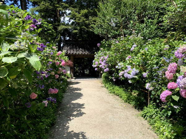 京都府木津川市加茂町にある真言律宗の寺院で、アジサイの名所としても知られる花の寺「岩船寺(がんせんじ)」。