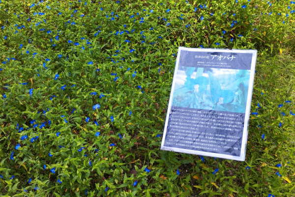 アオバナという小さな鮮やかな青い花が一面に咲いているところがありました。