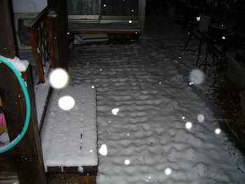 夜10時ごろ外を見ると、一面真っ白になっていました。