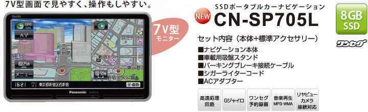 ジャイロ装置やワンセグチューナーは別購入だったので CN-SP705L に比べると結構高かったと思うが、性能は全くの逆転。