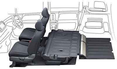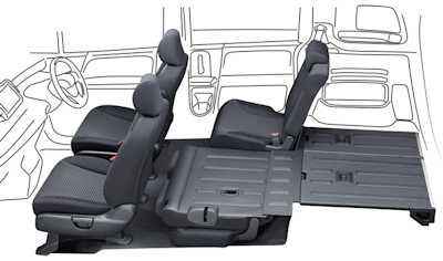 | シートアレンジの一例 この車を選んだ最大の理由がこのシートアレンジです。 後ろのシートをワンタッチで倒すとまっ平らなベットスペースが出来あがる。 最大で2015mmの長さがあれば私でも余裕で車中泊が出来る。 荷物が多い時は運転席と助手席のシートに荷物を移動する必要がある。 |