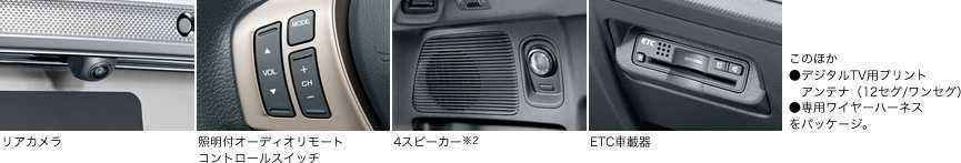 | ハンドルにTVやオーディオの操作スイッチや、音声ガイドタイプのETCがセットされている。 |