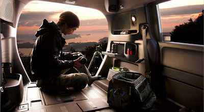 決めた理由は、後部座席を倒すと長さ2,015mmのまっ平らな車中泊スペースが出来る事でした。しかも床の位置が低いのでミニバンより空間が高く、釣りの仕掛け作りをしても圧迫感が無い。