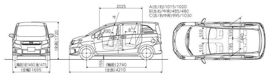 ●スパイク 全長×全幅×全高 4210×1695×1720mm 2列シートの5名乗り