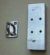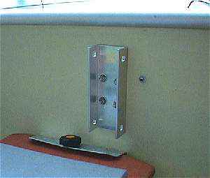 ボート側板をアイプレートとアルミアングルでサンドイッチにしてM5のステンレスボルト4本で固定。
