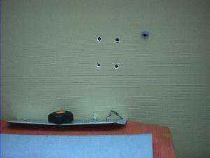 アイプレートの穴にあわせてアルミアングルとボート側板にドリルで穴をあけた。