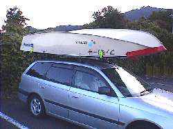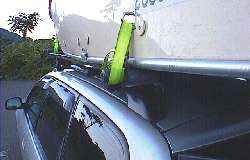 カートップ時のボートの固定方法 (組み立てたままで車載する)