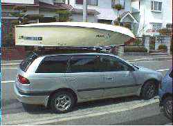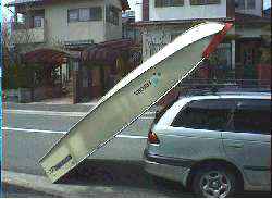 通常は、折り畳んでサーフボードのように車の屋根に積みますが、釣りの開始時に組立が30分、終了時に分解が30分かかり、折り畳みは便利だけれど意外と手間がかかります。
