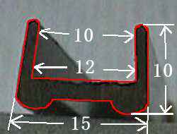 下の写真は見づらいかもしれませんが余った端材の画像です。右図は断面の寸法です(単位mm)。