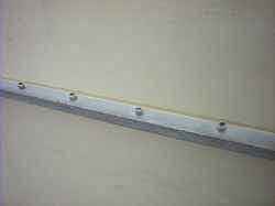 フリージアの船底の結合部のアルミの幅は約10mmですので、ちょうどはまり込むという感じで取り付けできました。しかし長さが足りないので2本使うことになりますが、下の接着剤でつなぎ目を埋めるときれいに出来ます。