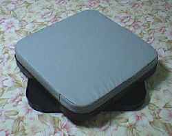 このクッションを外して、折り畳み椅子の足をこの回転ケースの中に乗せると、回転式の折り畳み椅子にもになるという説明が付いていました。