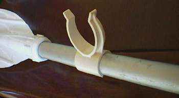 口の開いたところをパイプに当て、グッと押し込むとパチッとはまります。少し斜めに当てて押し込んだほうが入りやすいようです。当然外すときはこの逆。