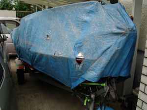 しかもボート表面に劣化したブルーシートの青い粉が付くのでボートが汚れてしまう。