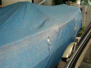 今回シートが破れたのは良く日が当たる面。反対側は駐車場の屋根で日が当たらないので全く損傷無し。