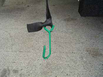 ゴムひもの反対側にはビニールコートした太い針金で作ったフックを結ぶ。