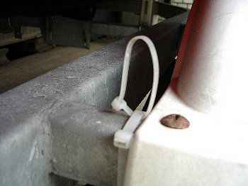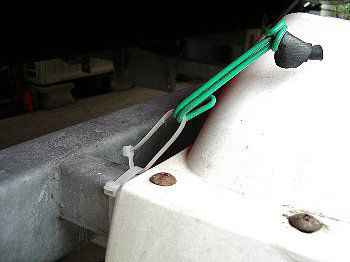 トレーラーにはワンタッチで取り付けできるビニールの結束バンドでワッカを作り、フックを引っ掛ける。