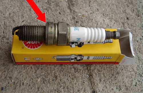 一度使用した点火プラグはここのワッシャーがつぶれて反発力が無くなりエンジンとの密着度が落ちるため、圧縮が悪くなり点火しづらくなるらしい。