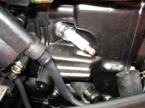 | 点火プラグは縦に2本並んでついている。 外観上は不具合等全くわからず外してみた。 場所的には狭いが専用工具がついているので2本の取り外しと取り付けは10分程度の作業。 |