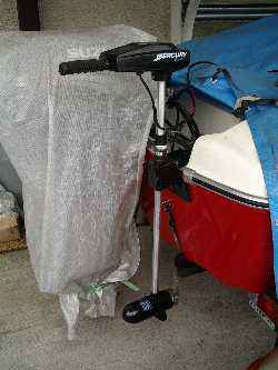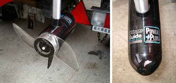 以前船外機の水洗いに使っていた大きなごみバケツの中で動作させてみると、入れ替えた前のエレキとは比較にならないぐらい良く回る。逆に力が強すぎないかと心配になってきた。