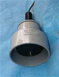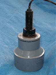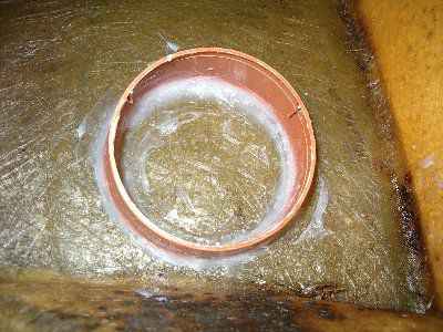 船底の斜めを吸収するためにプラスチックの筒を斜めにカットして取り付け振動子が水平になるように細工。