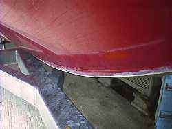釣行時はコンクリートのスロープを使用しているので、出港時と帰港時には必ずボートのキールがスロープに乗り上げた状態になる。