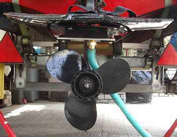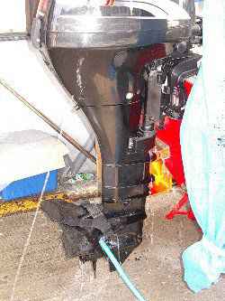 2005年7月 スズキの15馬力4サイクルの船外機にスタビライザーを取り付けたため、釣行後の水洗いの時スタビライザーが大きすぎてごみバケツに引っかかり、スタビライザー下部の冷却水の取水口が水の中に入らなくなった。