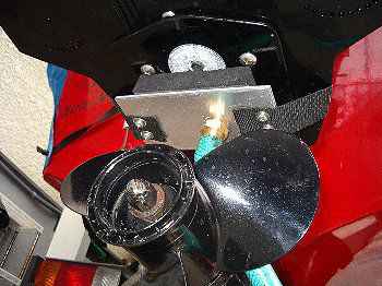 | スタビライザーの下の取水口に取り付けてホースをつないだところ。 | |