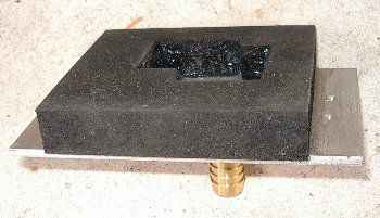 | ゴムスポンジの内側を切り抜き、ステンレスの板にバスボンドで貼り付けたところ。 切り抜いた部分がボロボロと剥がれ落ちて水と一緒に吸い込まれないように内側にもバスボンドを薄く塗りつけてみた。 |