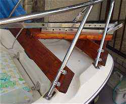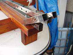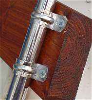 ベースの木材は竿受けのベースと同じようにステンレスのサドルで取り付けてある。