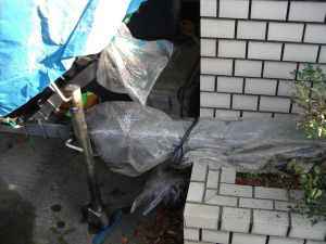 トレーラーのカプラ部分にも簡単にカバーをして雨水が直接かからないようにした。