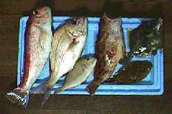 アマダイ 33cm、マダイ 31と18cm、ガシラ 27cm、カワハギ 20cm、ムシカレイ |