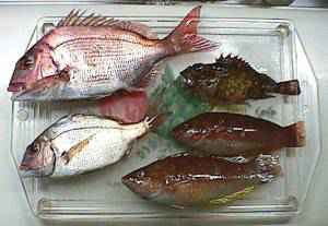 マダイとアジを狙い、水深60メートルのポイントに着いて仕掛けを下ろすと前方45度に仕掛けが出て行く。道糸を出しながら底を取っているとチャリコがわずかな信号を送ってきた。針を外す時に昇天してしまったのでキープ。すぐまたアタリ。今度は先ほどより海中で抵抗している。30センチにはだいぶ足りないが、塩焼きにちょうど良いサイズ。