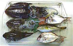 コウイカ(スミイカ) 2ハイ 、チャリコ 2匹 、フグ 2匹 |